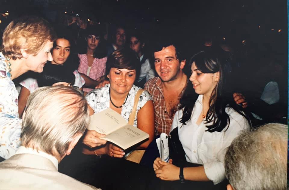 A los 16 años, con mi familia, fuimos por primera vez y conocimos a Borges y a Bioy (el fotógrafo no estuvo muy acertado al tomarlos de espaldas)